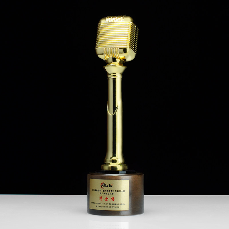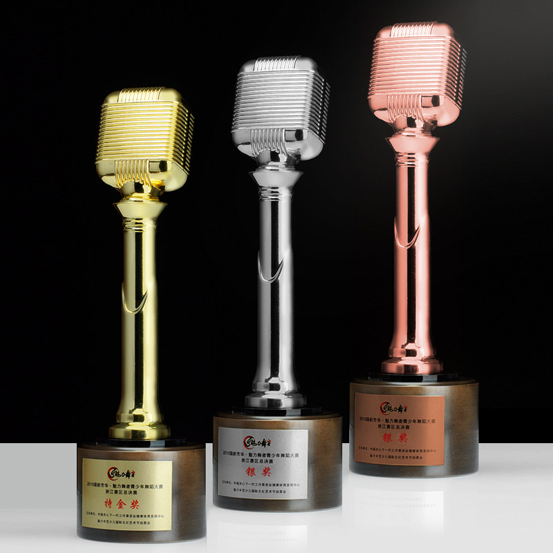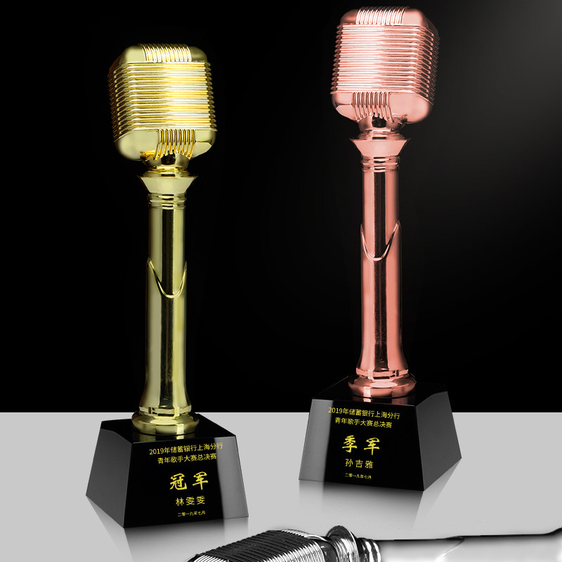 Golden Microphone Trophy Custom Microphone Singing Speech Music Host Good Sound Competition Gold And Silver Bronze Champion Award