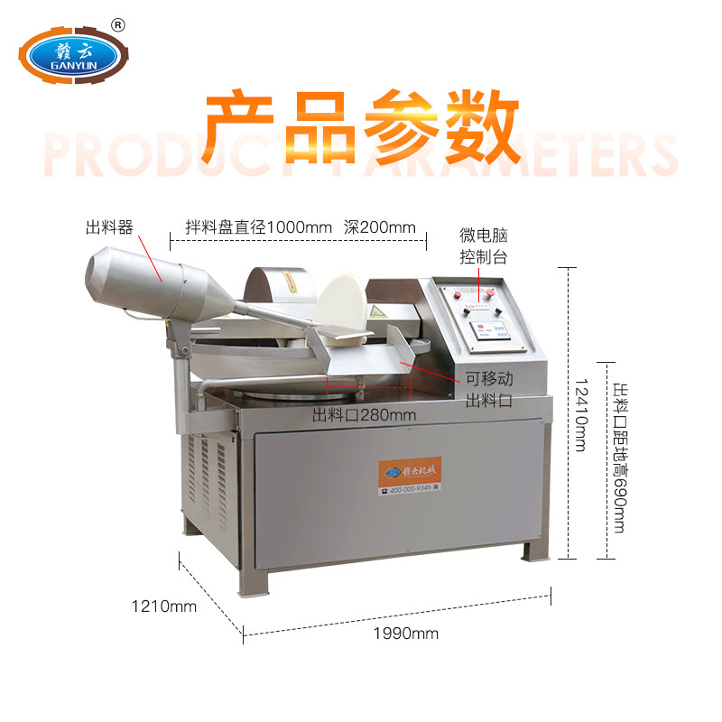 Ganyun fully automatic 125 type double-speed frequency conversion chopping and mixing machine for fish tofu stirring machinery high speed beating machine for commercial use