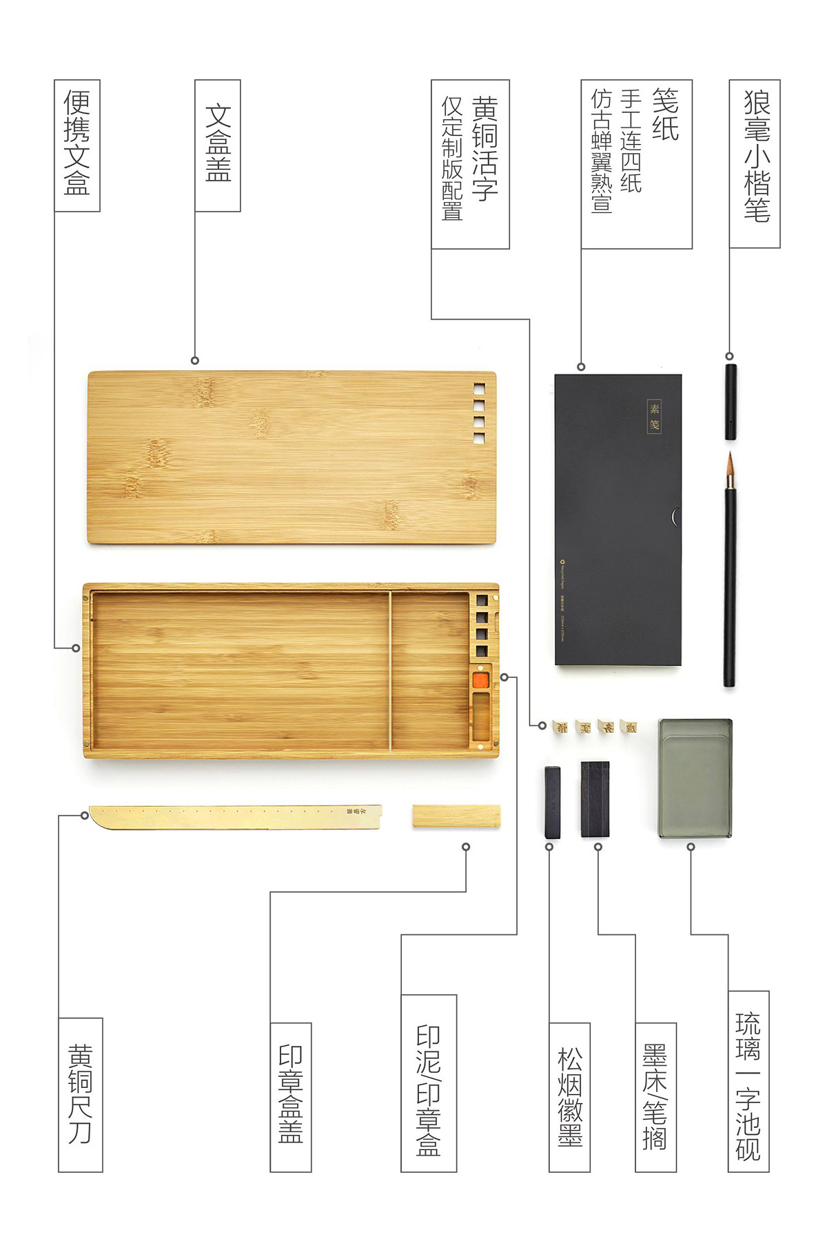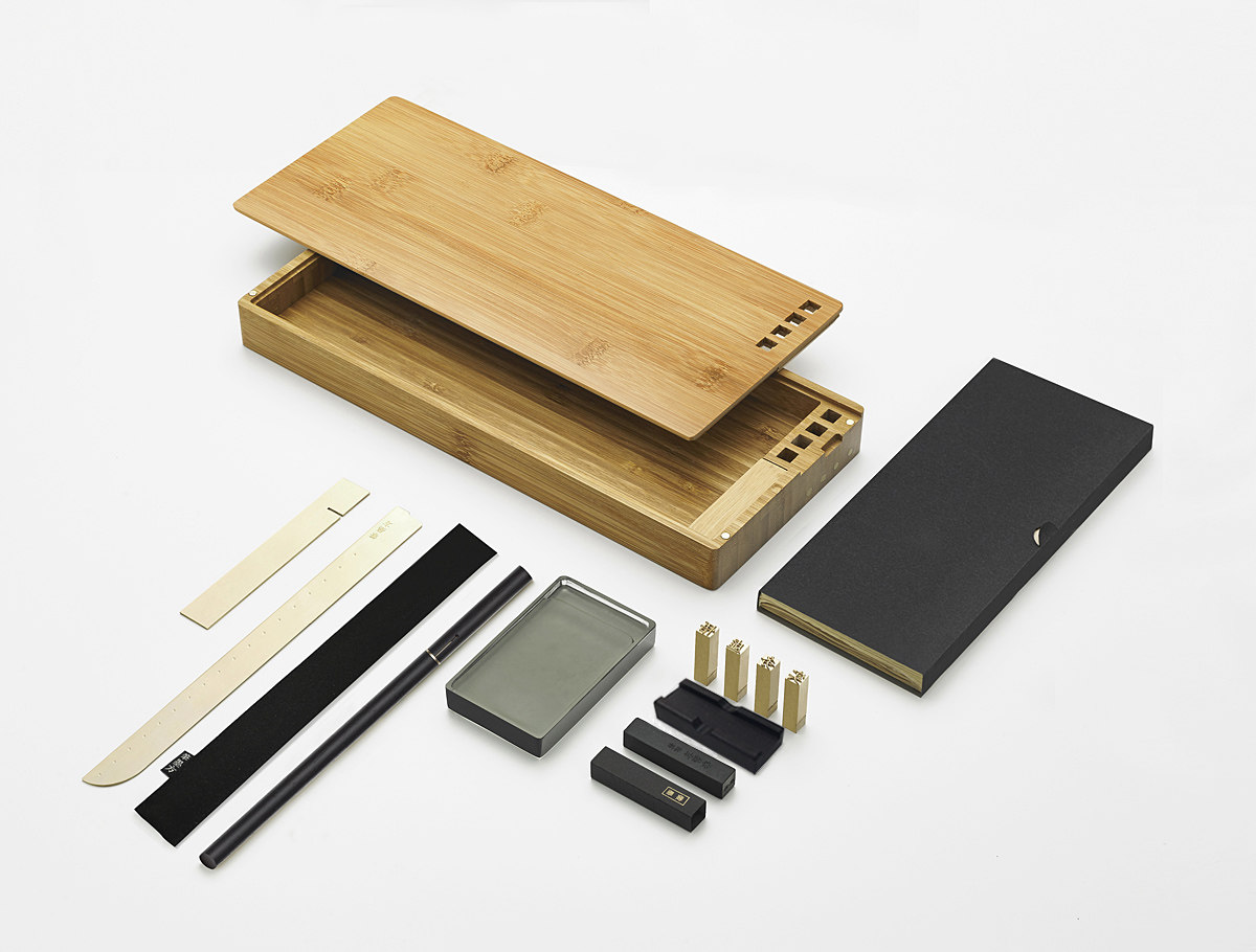 Slow matter pen ink bamboo box seven Xiang brass knife pine ink bed ink bed pen shelves small pine pen brush ink literal script creative custom gift delivery within 7 days