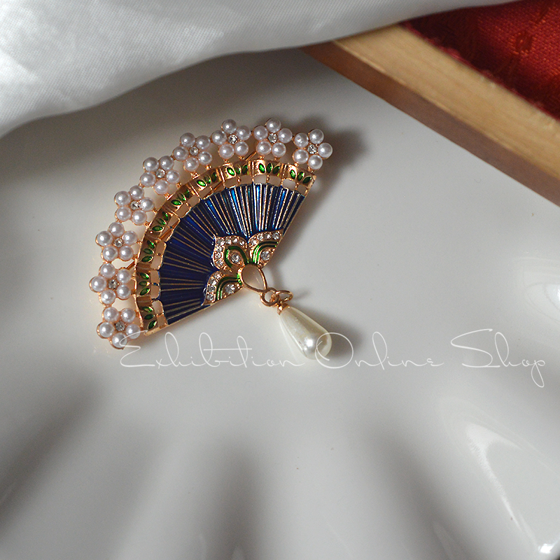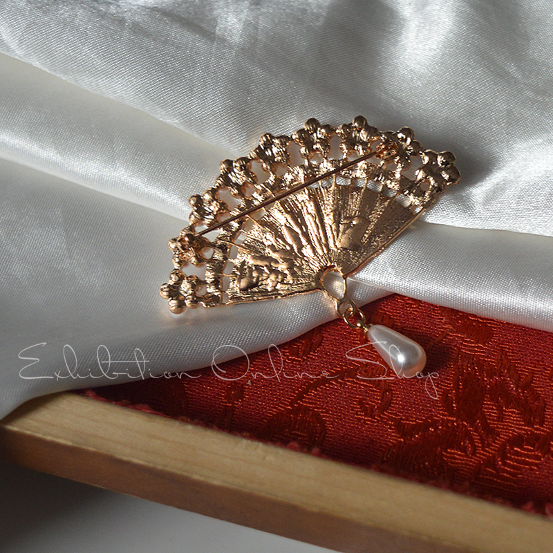 ExhibitioN Vintage fan-shaped brooch High-end femininity luxury atmosphere Pearl corsage badge Clothes accessories