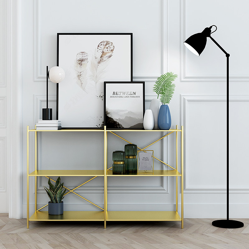Nordic decorative bookshelf Wrought iron multi-layer partition shelf Living room kitchen floor shelf Bedroom entrance storage shelf