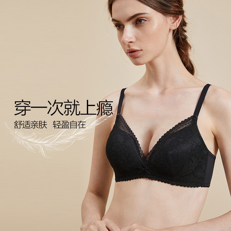 Jinsanta no steel ring underwear female silk double-sided lace seamless underwear gathered sexy beautiful back mulberry silk bra