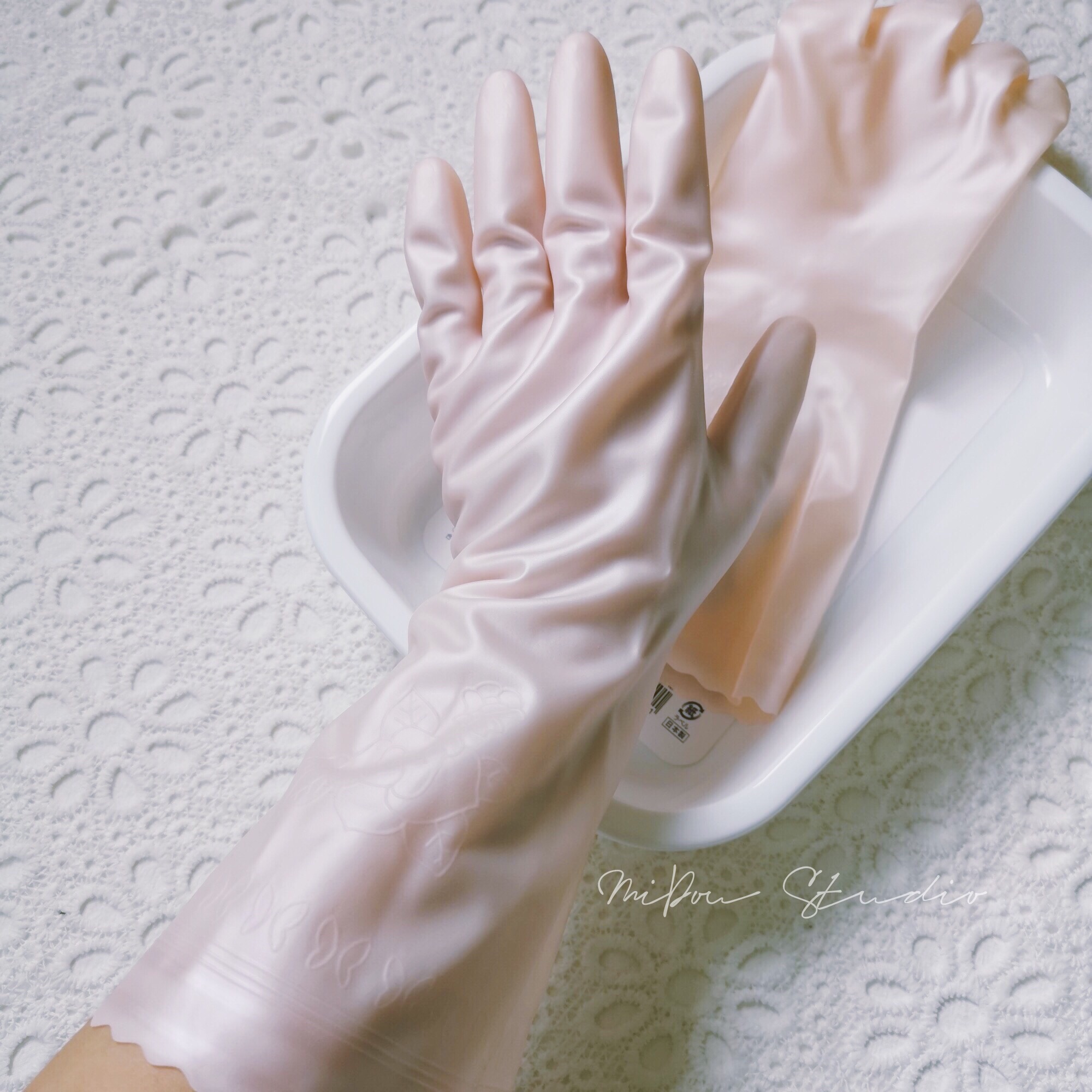 Spot Japan printing and knocking on good-looking housework gloves thickened flocking non-slip waterproof cleaning dishes