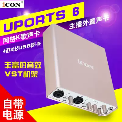 ICON U red sound card professional PORTS 6 VST Aiken external sound card USB sound card set live broadcast anchor recording K song running artifact computer dedicated desktop mobile phone singing