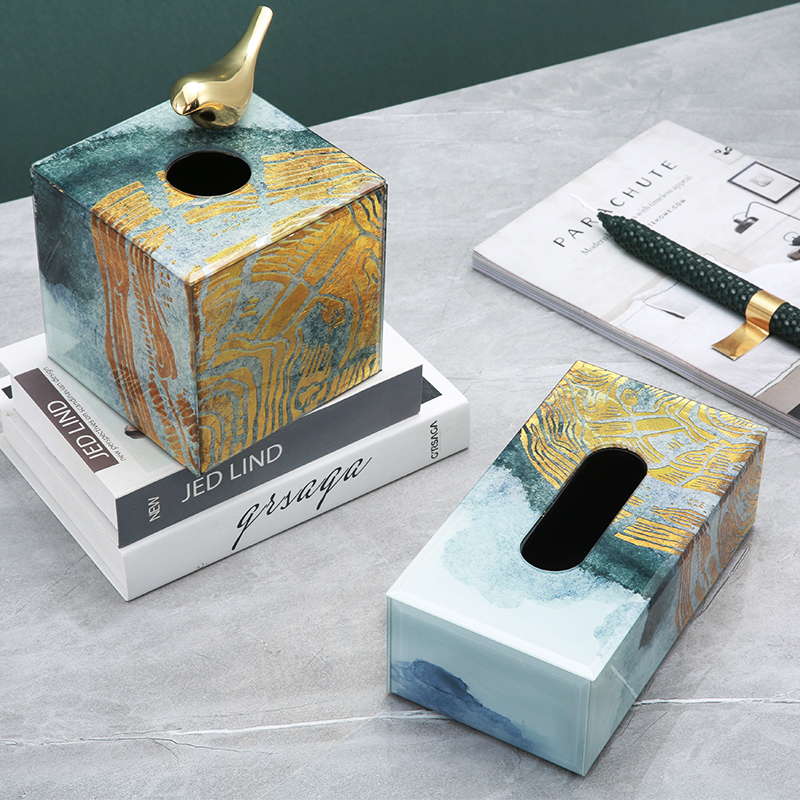 American light lavish paper towels box swing piece tea table napkin paper box Home living room glass sanitary paper box table Extraction sanitary paper box