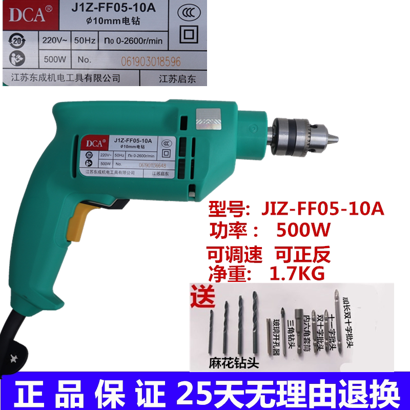 Dongcheng DCA electric drill J1Z-FF05-10A electric drill Electric drill 500W high power industrial grade speed control electric drill