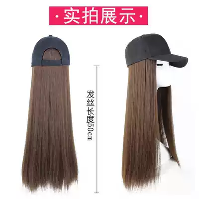 Wig female summer hat one net red with the same long hair natural realistic cap long straight hair new style wig