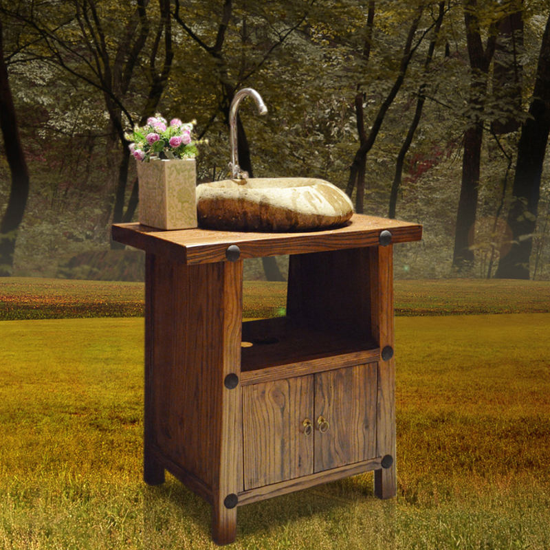 Best selling Chinese style bathroom cabinet Promotion Chinese style antique bathroom cabinet solid wood bathroom cabinet pastoral bathroom cabinet