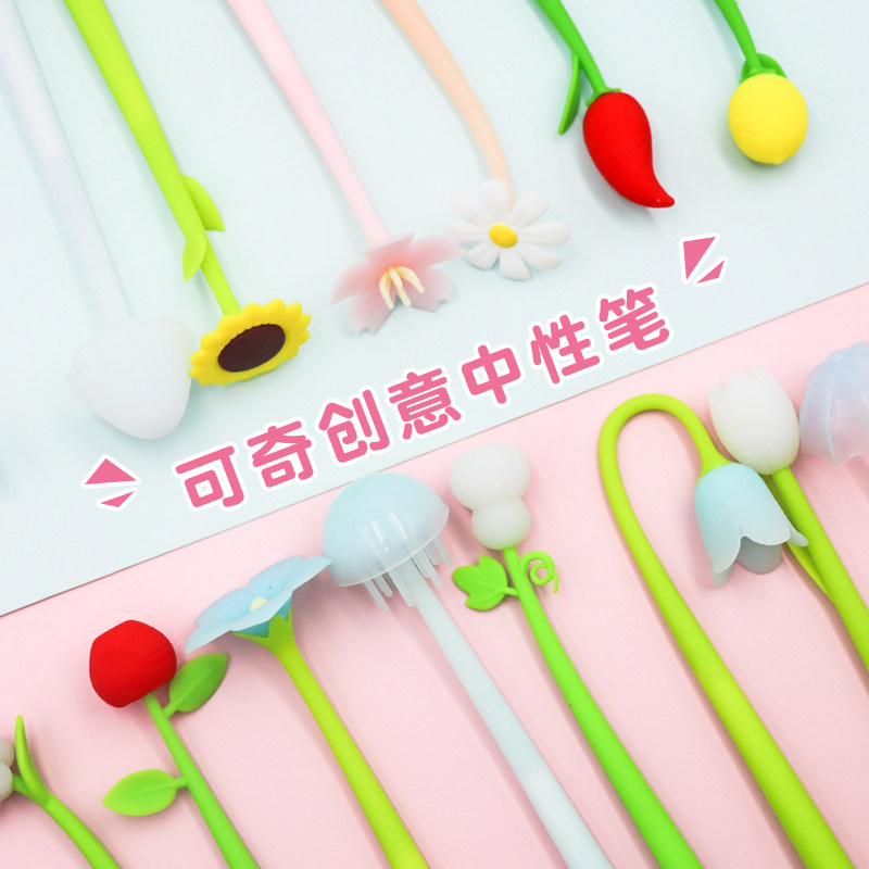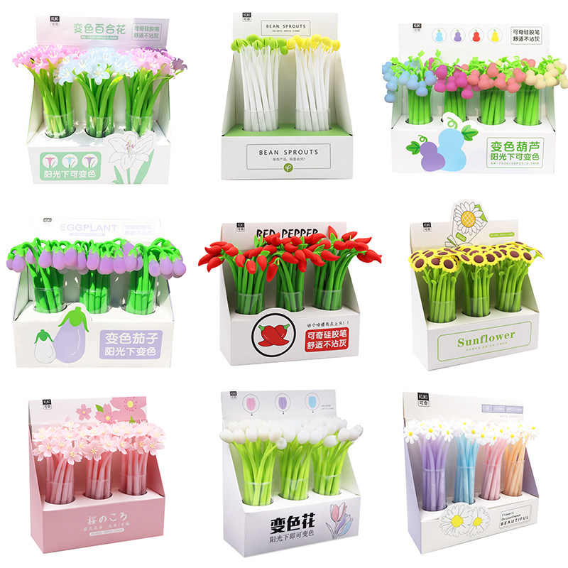 Shake sound with the same tulip magic sunshine temperature change pen Silicone pen Cute super Cute cartoon plant fruit gel pen Girl heart pen Student creative prize pen Flower signature pen Children