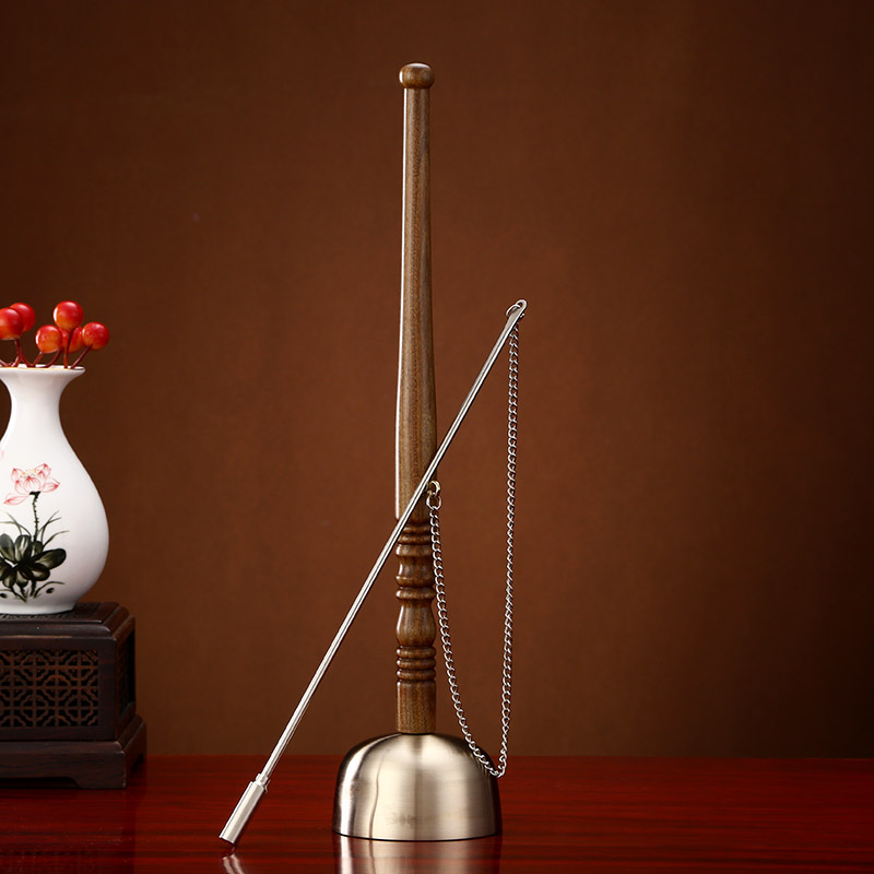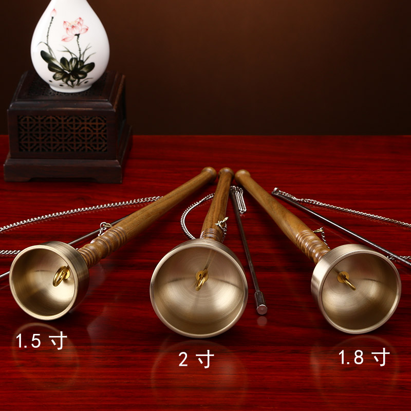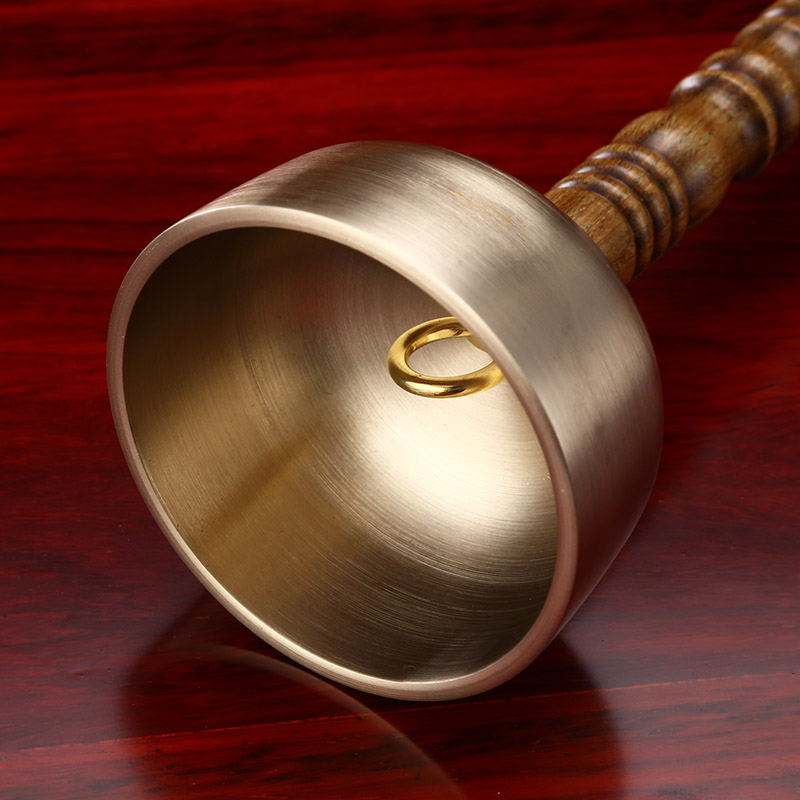 Buddhist supplies Daquan household pure copper solid wood long handle lead chime temple sandalwood handle lead Qing copper exhaust craft gift decoration