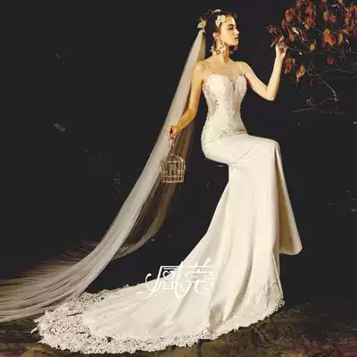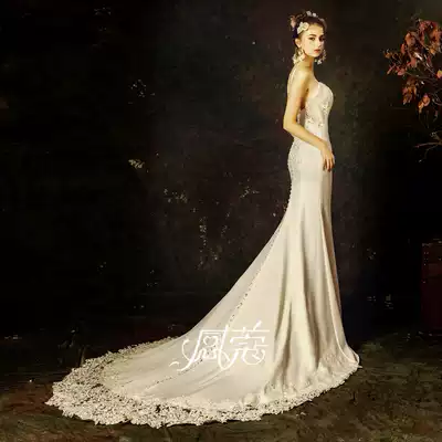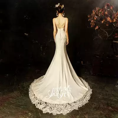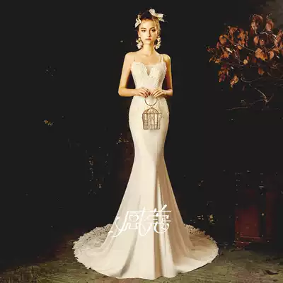 Satin fishtail wedding dress 2021 new bridal mortal fantasy light wedding dress Korean style travel simple