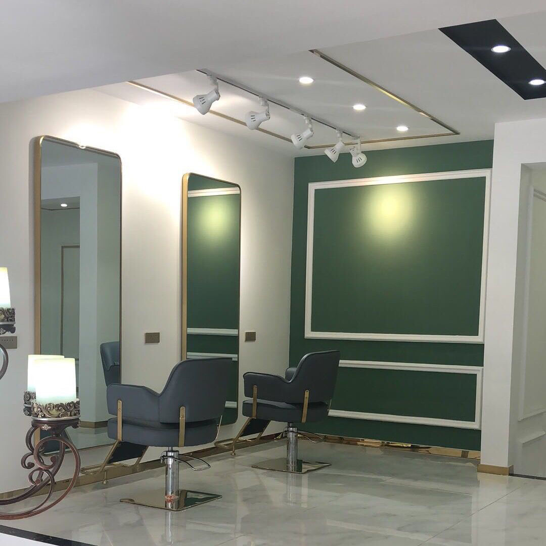 New upscale stainless steel golden single-sided beauty hair mirror desk hairdressing-shop hanging wall cut hair with lamp mirror hair salon special-Taobao