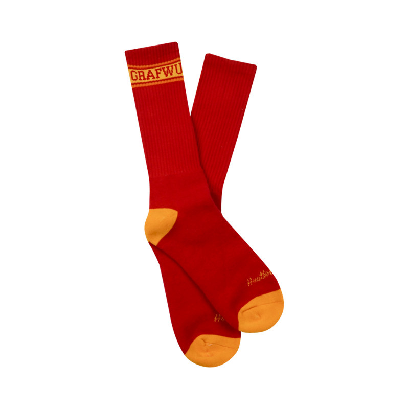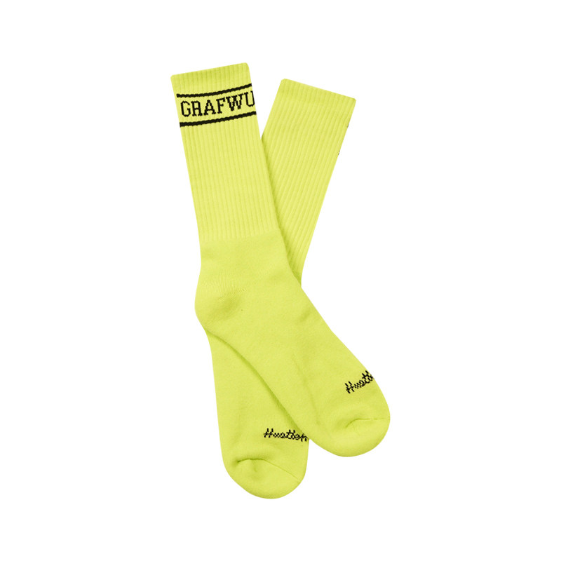 Red and yellow contrast socks Fluorescent yellow black contrast socks Blue and white contrast socks Light gray orange contrast socks Dark gray green contrast socks Black and white contrast socks White and red contrast socks