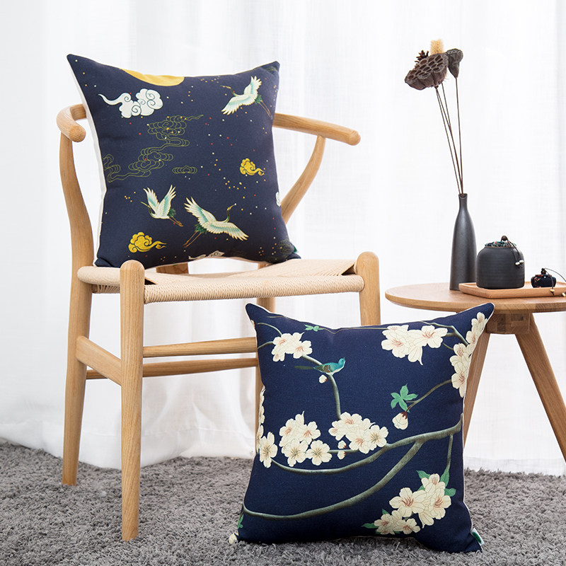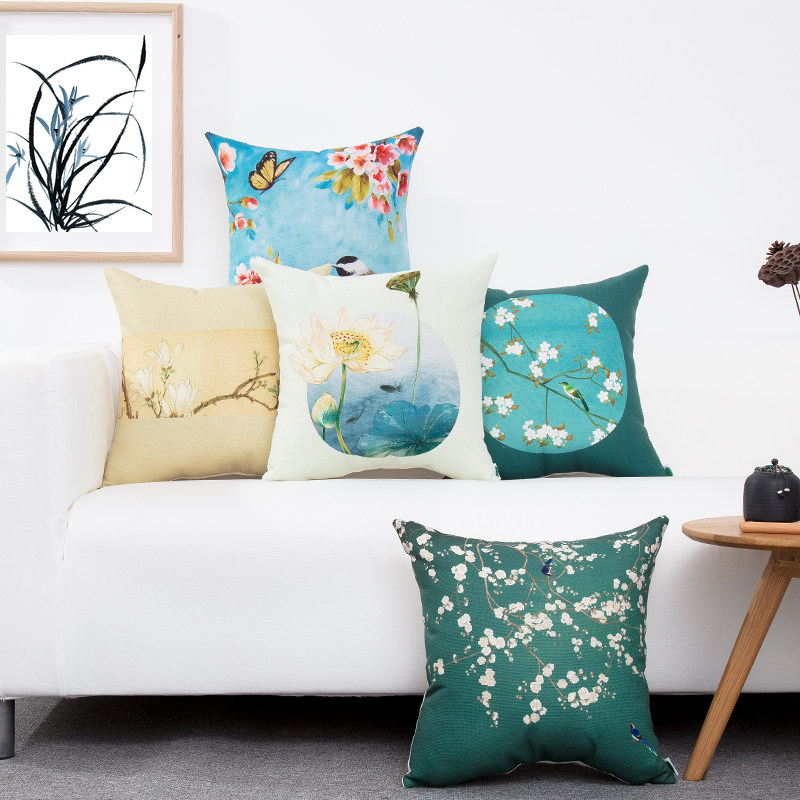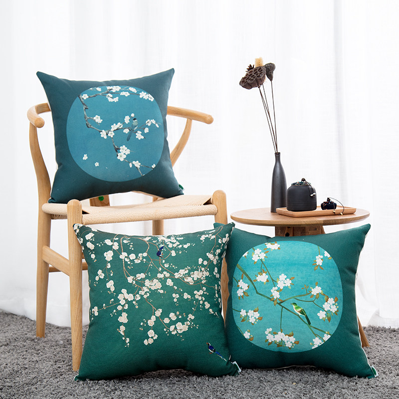 National Wind Plum Blossom Cotton Numb Holding Pillow Chinese Jade Lantu Sofa Leaning Pillow Detachable Pillowcase With Pillow Core Breathable Back Cushion