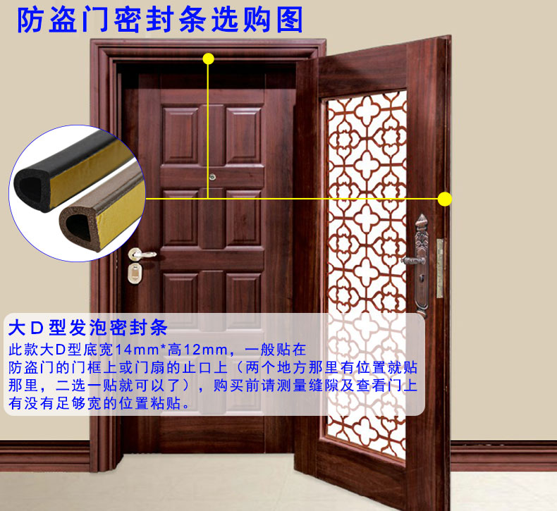 Diford security door sealing strip anti-crash soundproof self-adhesive strip windproof anti-dust strip car damping noise reduction large D type