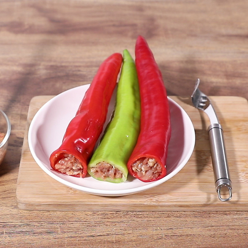 Pepper stuffed meat maker 304 stainless steel pepper core-pulling to make tiger skin green pepper cutting pepper tool to remove seeds artifact
