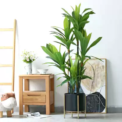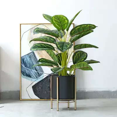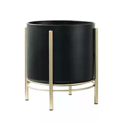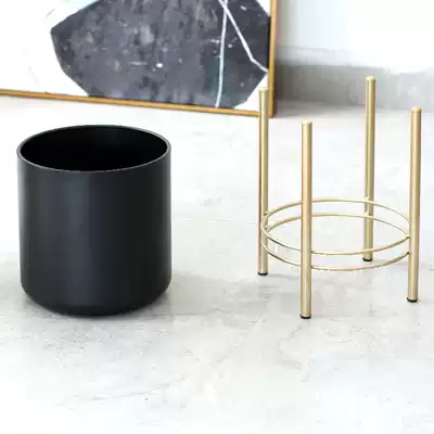 Nordic simple style wrought iron flower pot with bracket golden legs large plant utensils shelf black wild