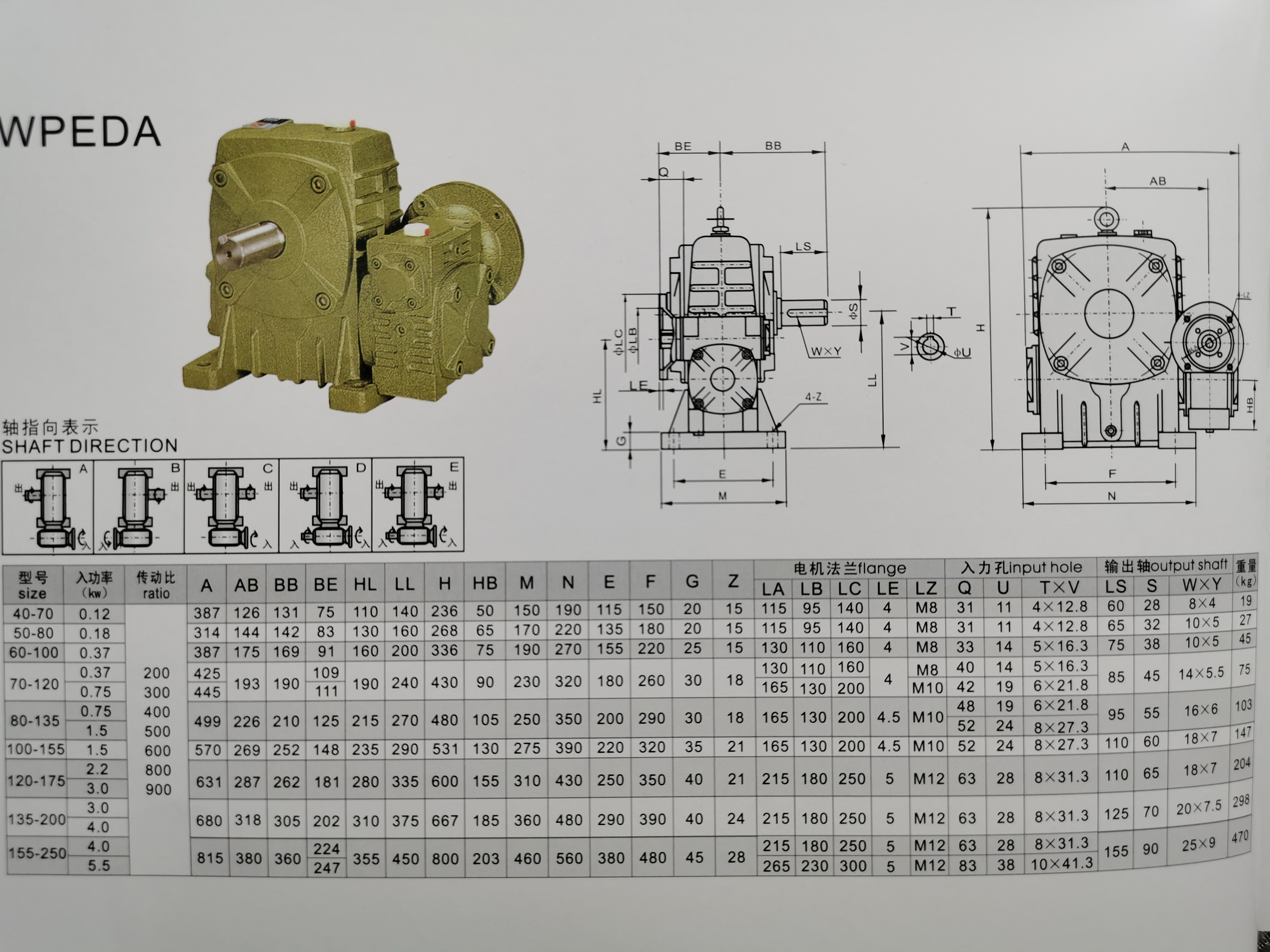 WPEDA WPEDS WPEDO WPEDX WPWED two-stage reducer worm gear transmission full speed ratio