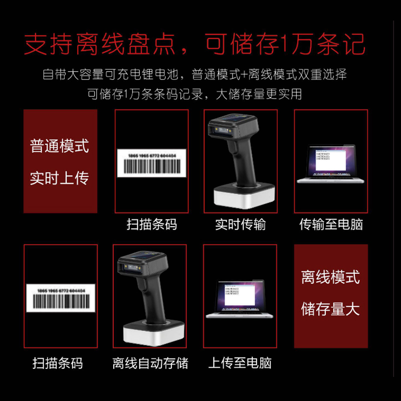 Cormi YC300D anti-nucleic acid detection Two-dimensional Code Mining with screen One-2-dimensional code Barcode Gun Wireless Bluetooth Scanner Collection Silver Stockholder Super-Cashier Silver Scanner Marked with base