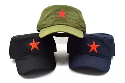 Red Star Embroidery Army Military Cap Hat five-pointed Star Flat Top Hat Military Cap