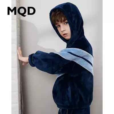 MQD children's clothing boy plus velvet pajamas winter new children's two-piece medium-size child thick warm home clothing set