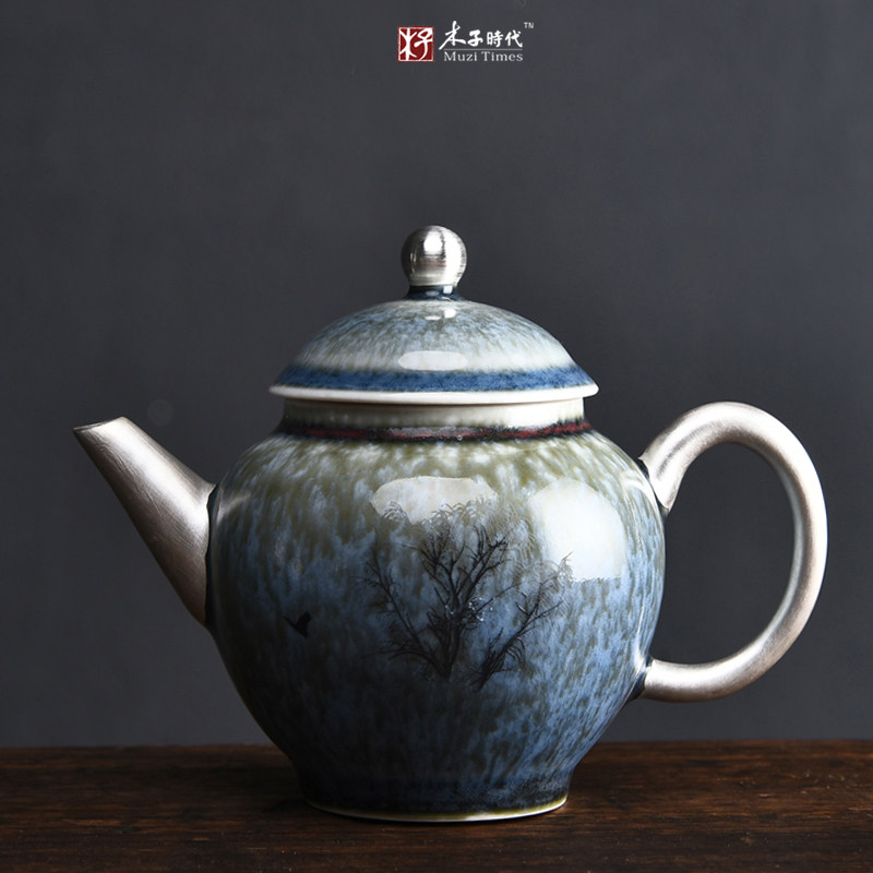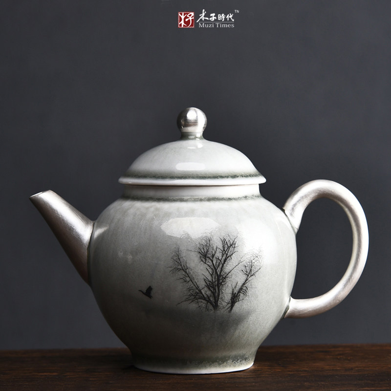 999 pure silver ceramic teapot Daisy Xisch Kettle Day Style Kung Fu silver tea set Brief Home Bubble Teapot Single Pot