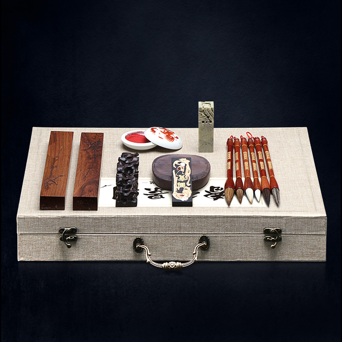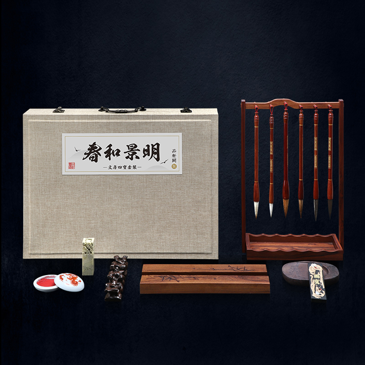 Wenfang Quad Boutique Boutique Suit Upscale Writing Brush Beginner Entrance Wolf calligraphy Calligraphy Calligraphy ink Stone Original Stone Natural Calligraphy Character Painting Special Pen Ink Paper Inkstone Ink-style Imitation Ancient Containing box