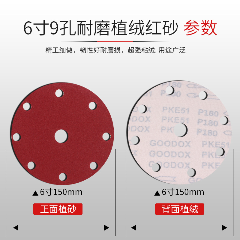 6-inch 9 holes flocking sandpaper Self-adhesive woodworking polished polished round pneumatic grinding machine grinding machine sand sheet