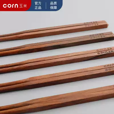 Corn red and sour branches household wood Chinese chopsticks 5 pairs set without paint and wax free solid wood fast speed family outfit