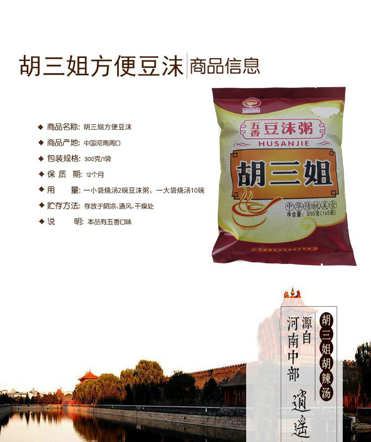 Bean Foam Porridge Hu Triple Sister Henan Specie Convenient Ready-to-eat Soup 300gX3 Bag Five Fragrant Bean Foam Non-Spicy Soup