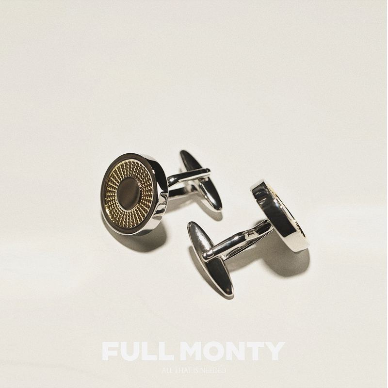 FULL MONTY WHITE STEEL GOLD TEXTURE Cufflinks MEN's BUSINESS French Casual Shirt SLEEVE NAILS GIFT BOX