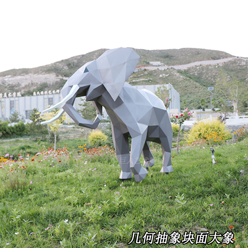 Outdoor landscape sculpture section geometry stainless steel animal fortune Elephant Hotel sample House exhibition center ornaments simple modern