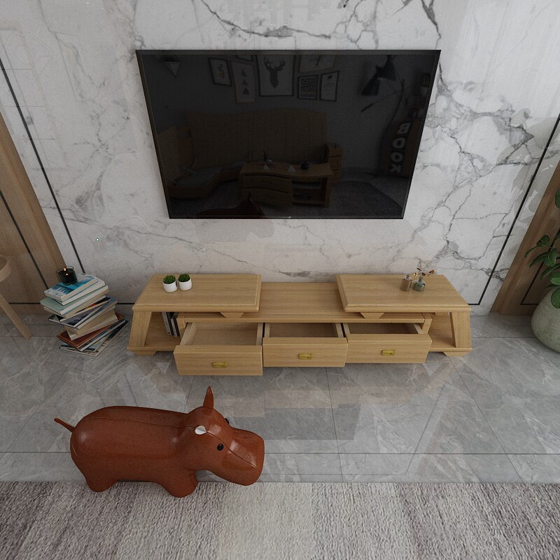 Simple modern solid wood TV cabinet retractable floor cabinet with drawers small apartment Chinese style combined furniture
