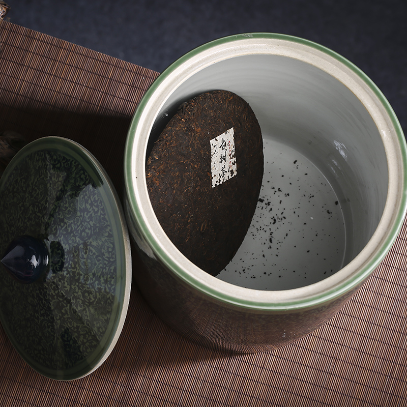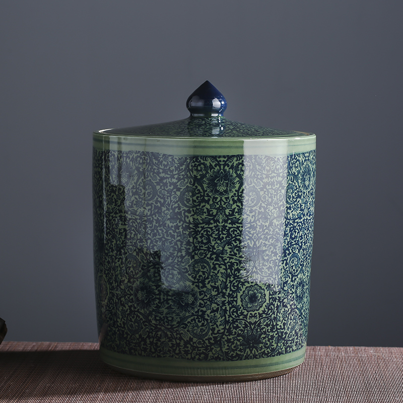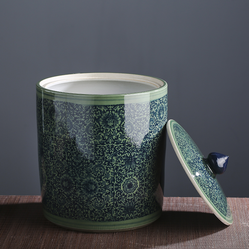 Jingdezhen Ceramic tea leaf jar Large number Pu'er 5-10 Sub-cake Jar Storage Tea Vat Wake-up Tea Jar Tea Box Tea Barrel Home