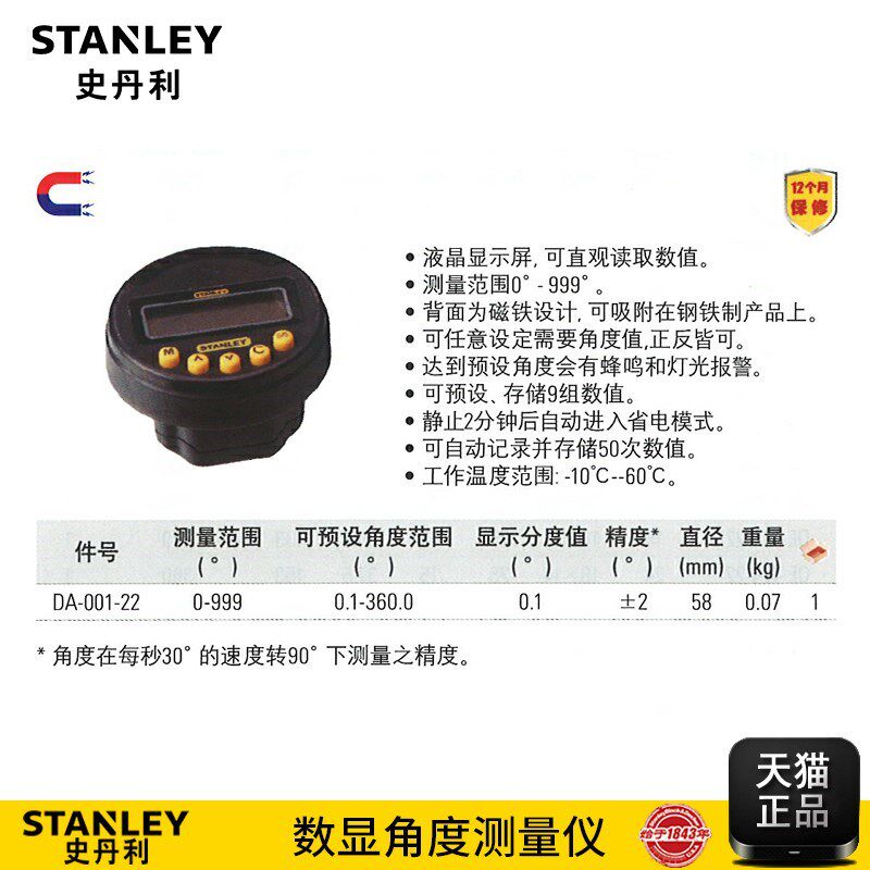 Stanley measuring angle measuring angle measuring instrument 0-999 ° preset angle range DA-001-22