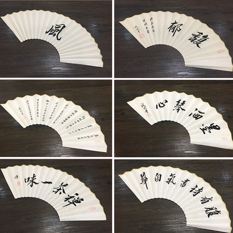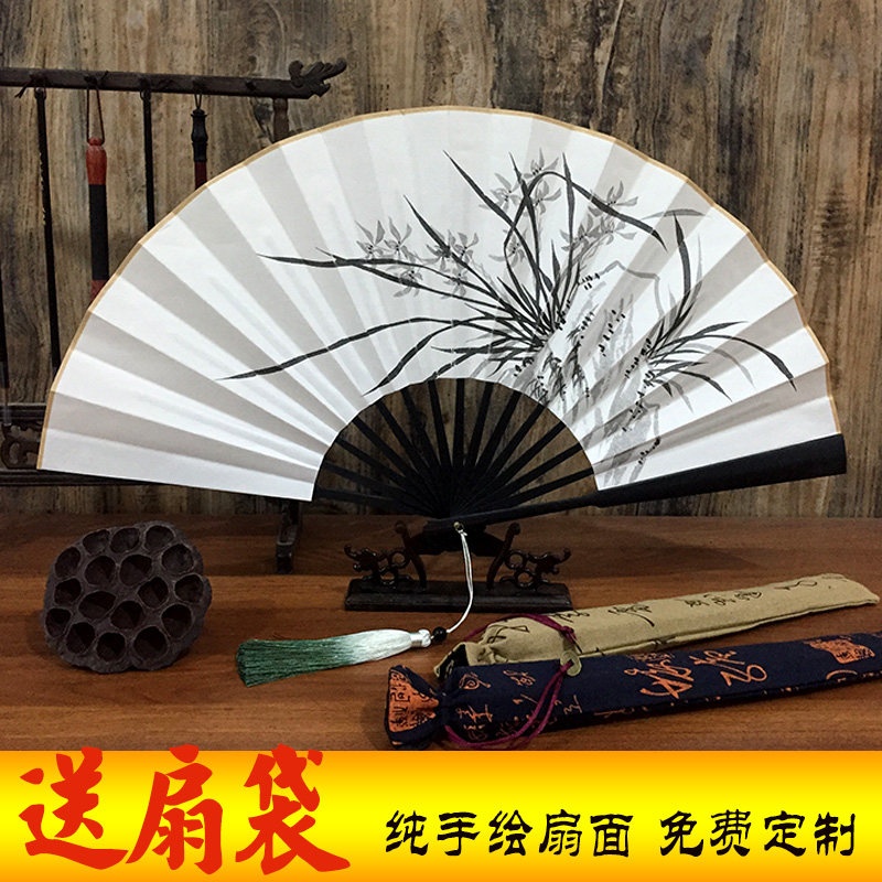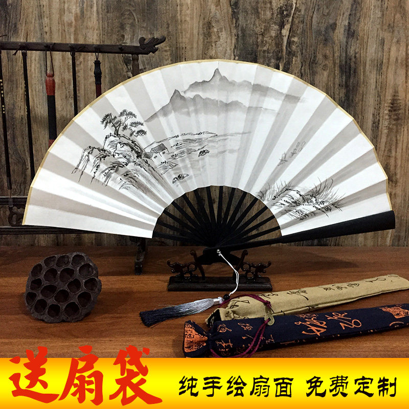 Chinese style hand-painted rice paper folding fan free custom bar disco fan ink style men and women gift inscription fan