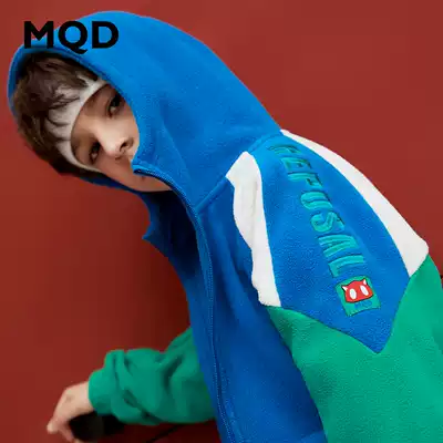 MQD children's clothing boy Korean hooded sweatshirt 21 autumn children's fleece medium big child jacket foreign pie coat tide