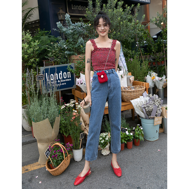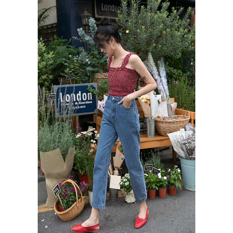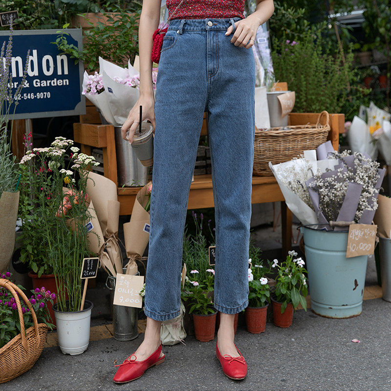 Find a blue high waist jeans female spring and autumn 2022 new tube pants small number nine-point pants