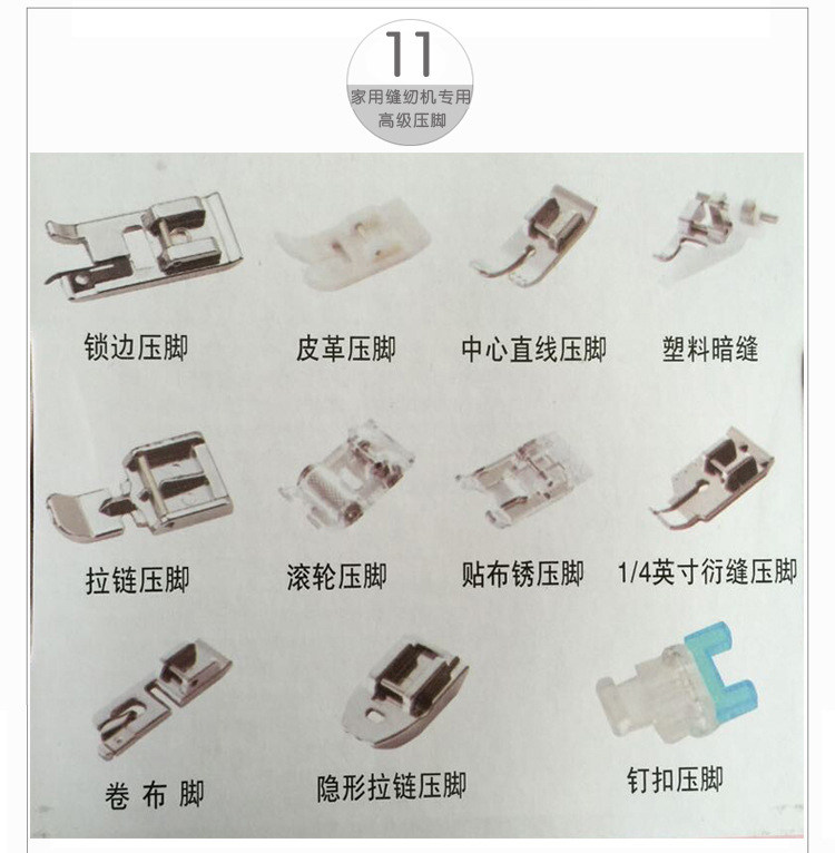 Buckle foot Invisible zipper foot Rolling foot Quilting foot Cloth appliqué foot Leather roller foot Zipper foot Concealed stitching foot