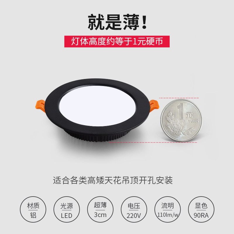 Ultrathin cylinder lamp black recessed LED ceiling lamp Home concealed fit 5 5 6 7 5cm Small hole lamp Three-color turn light