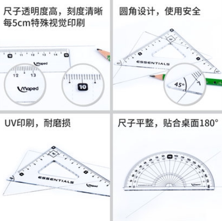 France MAPEDMAPed ruler Multi-functional ruler Triangular Plate Protractor student Drawing sleeve 15 20