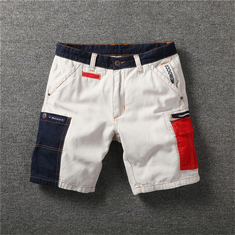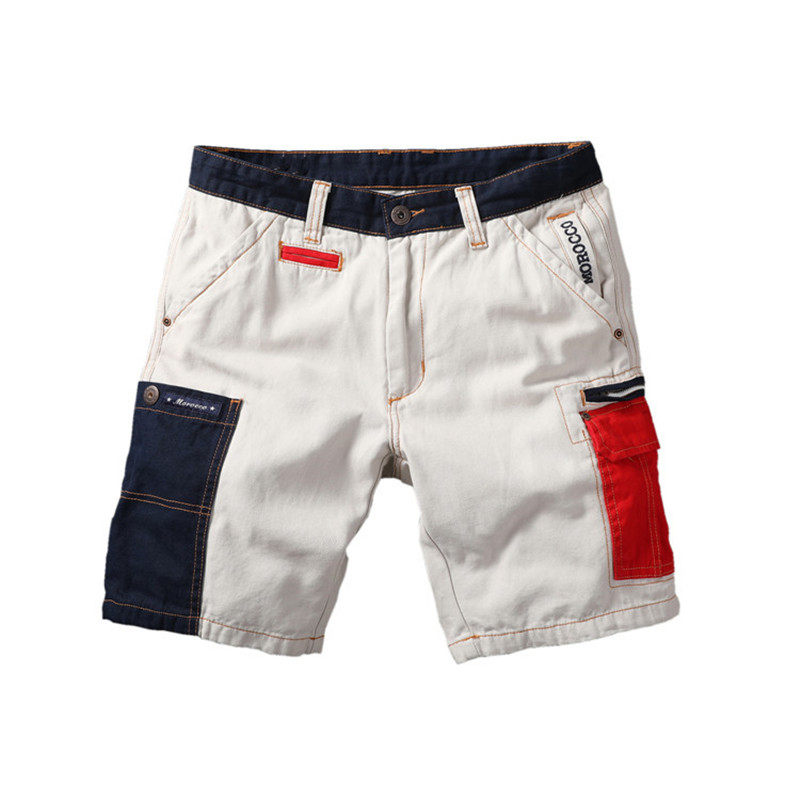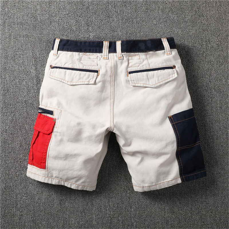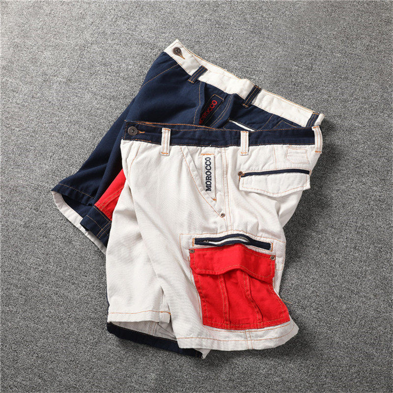 American Summer Men's Style Casual Shorts 50% Pants Personality Collision Color Splicing Washed to do old workout tooling 50% pants
