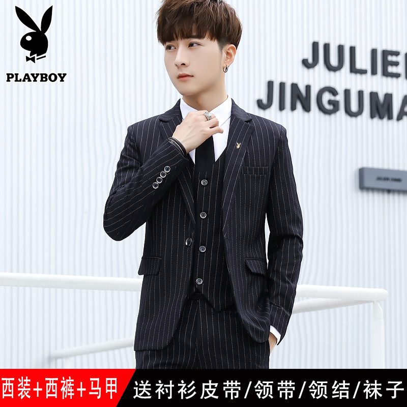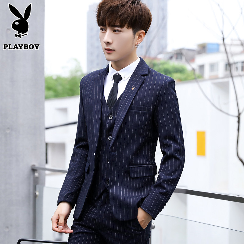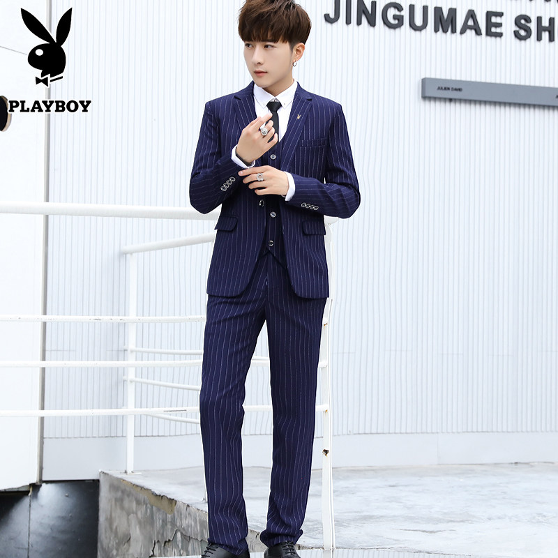 Floral Playboy men's suit suit Three sets of youth handsome young suit casual streaks groom wedding gown