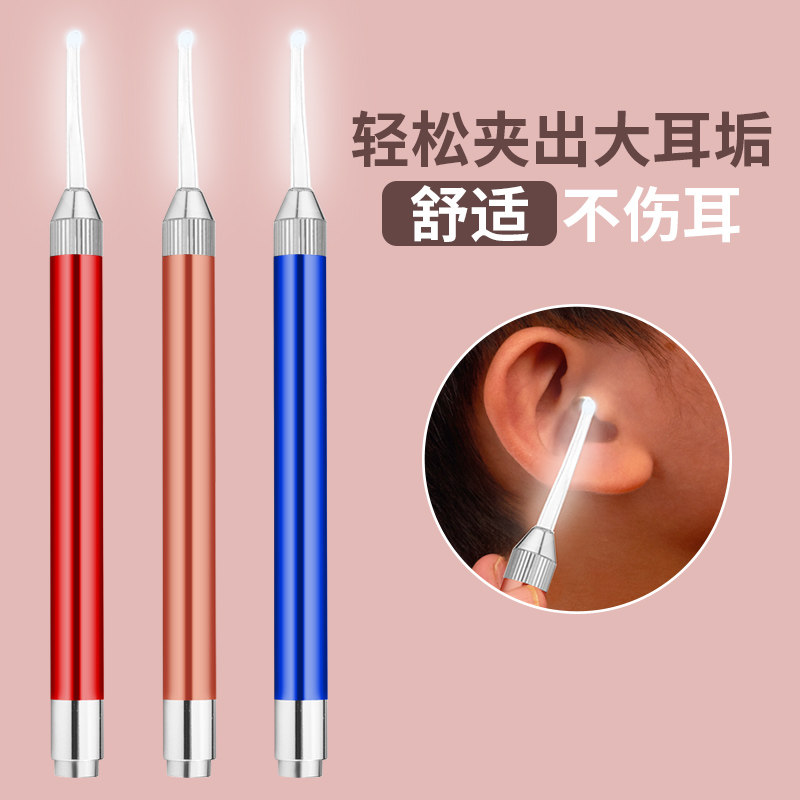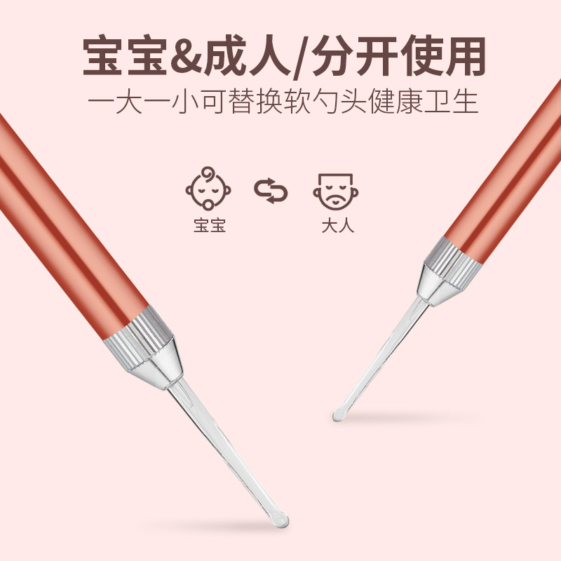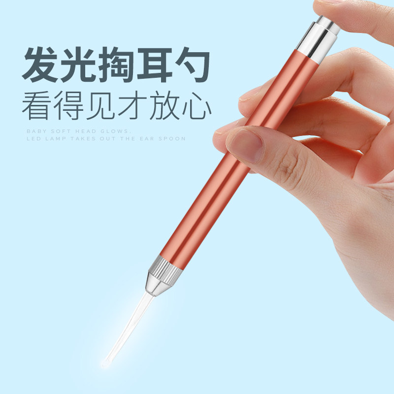 Pull ear artificial children glowing ear spoon baby dig ear spoon with lamp baby soft head silicone to pull ear shit tool