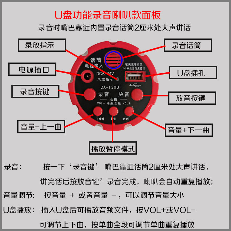 Stall outdoor publicity recording loudspeaker advertising horn 60V12V electric car recording selling broadcast