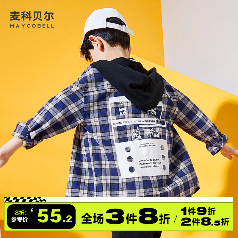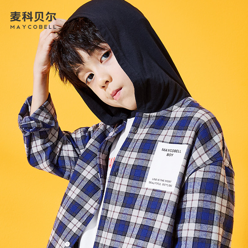 Boy Shirt Long Sleeve Spring Autumn section Pure cotton Lions Caps Plaid Lining Clothes CUHK Boy Jacket Tide Spring Clothing Blouse