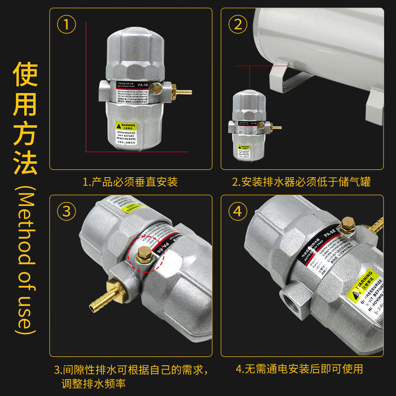 Chandwell PB-68 air compressor gas tank automatic drain valve PA-68 pneumatic automatic drain