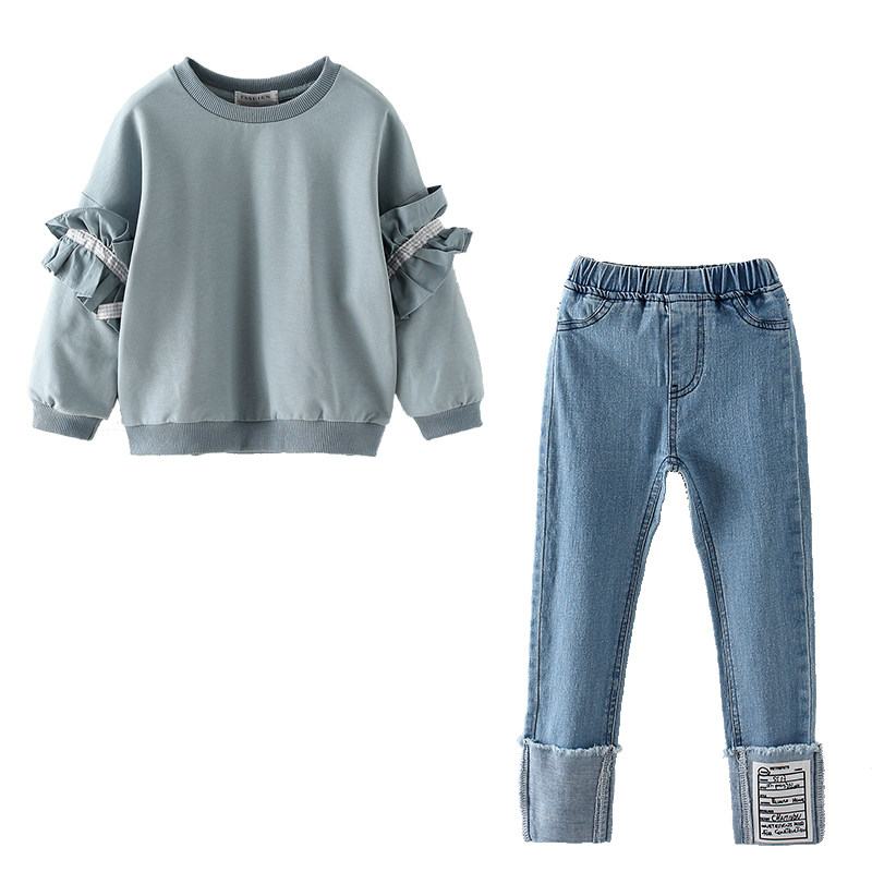 THXZ-Lace Sleeves Jeans Suit for the Lace Sleeves