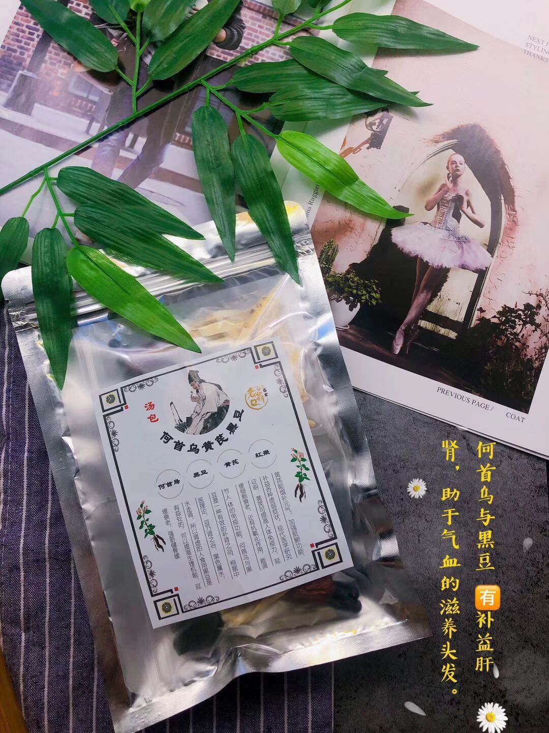 Black Hair Treasure He Shou Wu Black Bean Soup Men's and Women's Black Long Straight Hair Tea