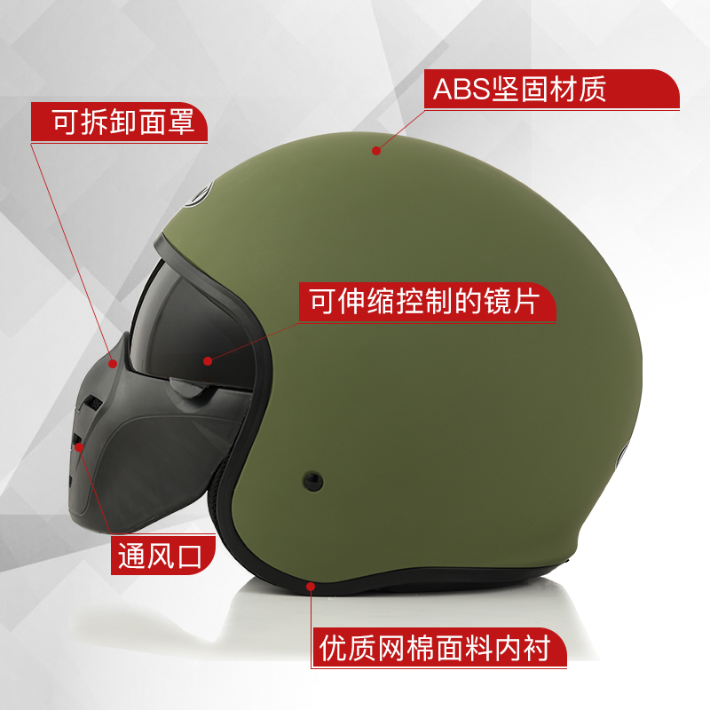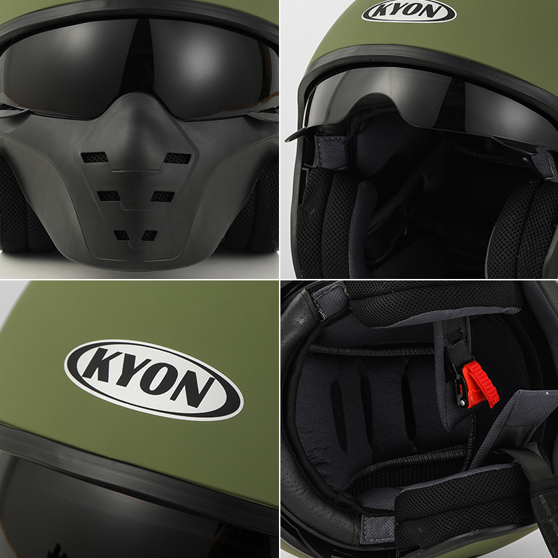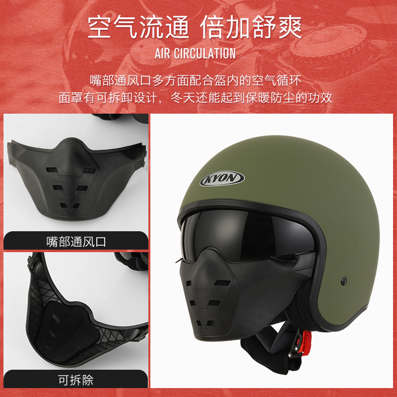 3C certified kyon motorcycle ghost face helmet personality Harley motorcycle helmet retro helmet three-quarter half helmet gray